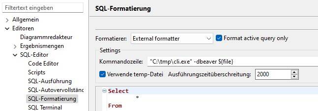 I copied the SQLinForm as External SQL Formatter in DBeaver command from the UI and pasted it into the Command Line Box of the external formatter command line setting, but now when I try to format my SQL code, it removes all the code in the current window.